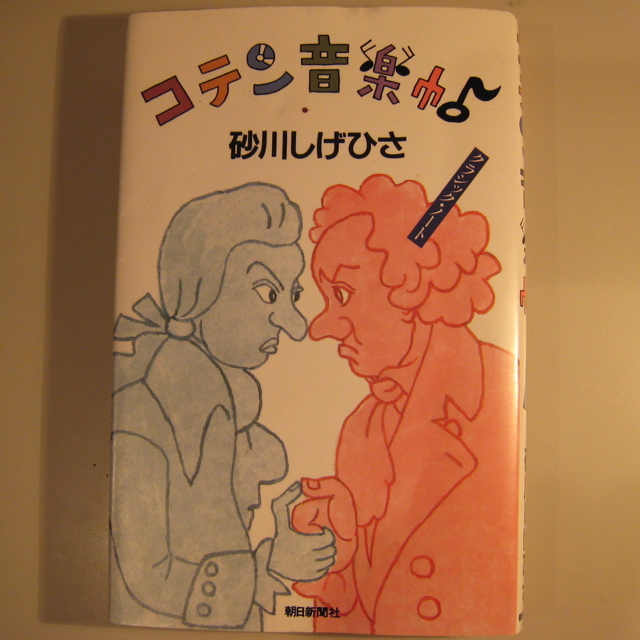 最近本棚から久しぶりに見つけて読んだ本が「コテン音楽帖」砂川しげひさ著です。クラシック好きな筆者の素直な気持ちが気合いの抜けたようなマンガと共に伝わってきて、(1986年の本ですが)今読んでも面白い本です。(クラシックをテーマにしているものの「のだめカンタービレ」とはまったく共通点ありません。コテン音楽帖は一回ごとの読み切りエッセイにマンガ付き。文章7割マンガ3割。)砂川しげひさ氏の公式サイト「コテン音楽堂」もご参考に。(コテン音楽帖、1986年10月10日第一刷発行、著者:砂川しげひさ、発行所:朝日新聞社、ISBN 4-02-255592-0、 190ページ)