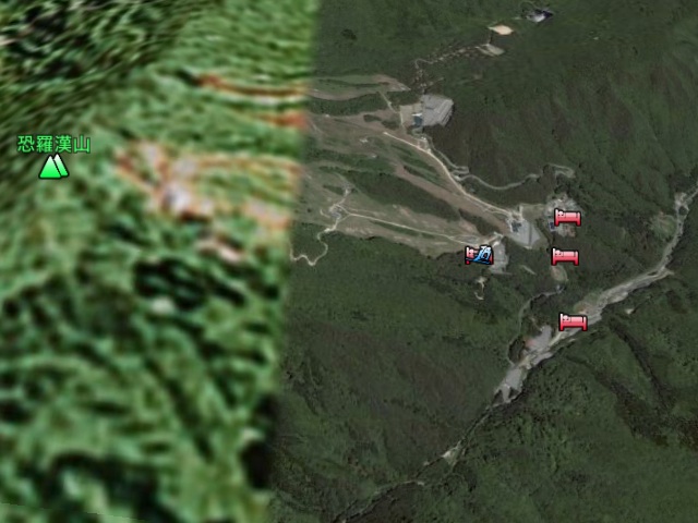 スノーボーダー7人の遭難と救助で話題になった、恐羅漢(おそらかん)ですがGoogle Earthで(緯度経度は北緯34度35分44秒、東経132度7分47秒。34 35 41 N 132 07 47 E)見ると起伏の具合、県境などがよくわかります(googleマップもこのままNとEの緯度経度で検索可能)。東側が広島県で西側斜面が島根県。7人が夜を過ごしたのは西側斜面です。偶然ですが2006.01.18の日記「Google earthで三瓶山、恐羅漢山」に一度書いていました。二年前よりもスキー場付近の地図の解像度が高くなっているような印象です。ネットで写真を探すと内谷の世界サイトの、雪の恐羅漢山ページに恐羅漢山頂からのよい写真がありました。
