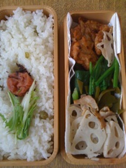 外出にも弁当 グルメ・クッキング X Facebook はてブ Pocket LINE コピー 2009.03.16 今日は仕事が休みですが弁当を持ち出すことにしました。 れんこん、ほうれん草、昆布、野菜ねりもの、梅干しなど。