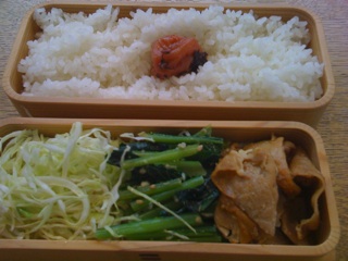 今日の弁当はキャベツ、小松菜、豚肉生姜焼きなど。