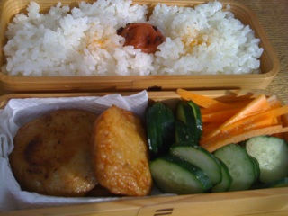 今日の弁当は、さつまあげ、きゅうり、にんじんなど。