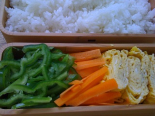 今日の弁当はにんじん、ピーマン、卵焼き。
