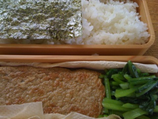 今日の弁当は宇和島じゃこてん、小松菜、海苔。