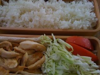 今日の弁当は鶏ささみ、キャベツ、トマト。