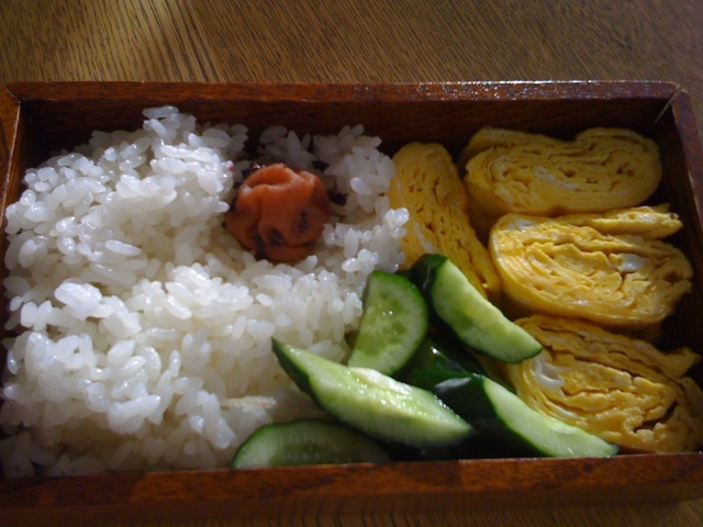 今日の弁当は卵焼き、きゅうり、梅干し。