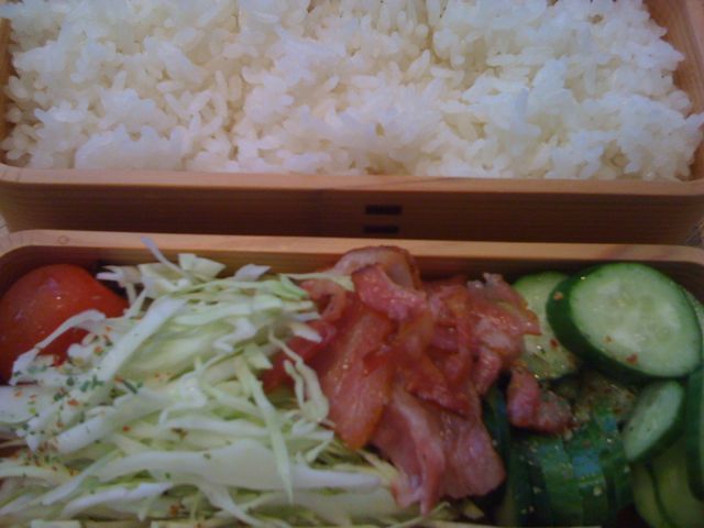 今日、クラリネット用楽譜を探していて見つけた店が「ザ・クラリネット・ショップ」。表紙から「商品注文」、「商品区分一覧」と進むと、編成ごとに区分された楽譜が豊富にみつかります。しかし驚いたのはこの店長さんの経歴。ビュッフェ・クランポン株式会社に入社して楽器修理を学び、フランス本社工場で製造工程を学び、しかも演奏をジャック・ランスロ氏に学んだとは…なんというすごい経歴なんでしょう。(ランスロ氏は有名なクラリネット演奏者でかつ良い教則本を出している人)。新聞記事「「ザ クラリネット ショップ」は“本物の専門店”」がよくまとまっていて読みやすいです。今日の弁当はベーコン、キャベツ、きゅうり、トマト。