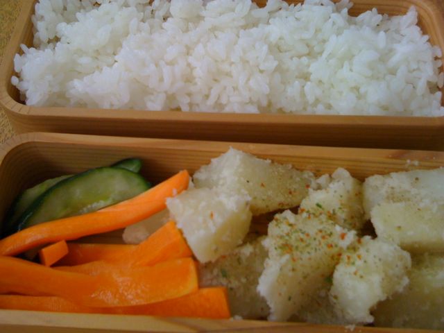 今日の弁当は、粉ふきいも、にんじん、きゅうり。