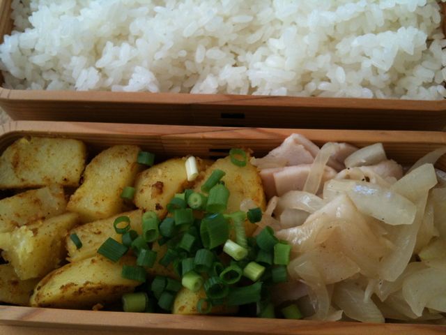 今日の弁当は玉ねぎ、ベーコン、じゃがいもカレー味。