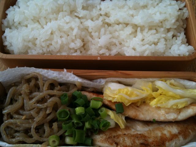 今日の弁当は白菜、ねぎ、こんにゃく、鶏肉。