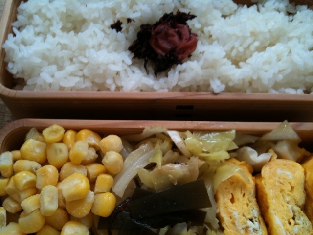 今日の弁当 グルメ・クッキング X Facebook はてブ Pocket LINE コピー 2009.11.27 今日の弁当は、卵焼き、塩昆布キャベツ、とうもろこし。(ちょっとマンネリなのは自覚はしてますが、ま、それもよしと勝手に納得。)