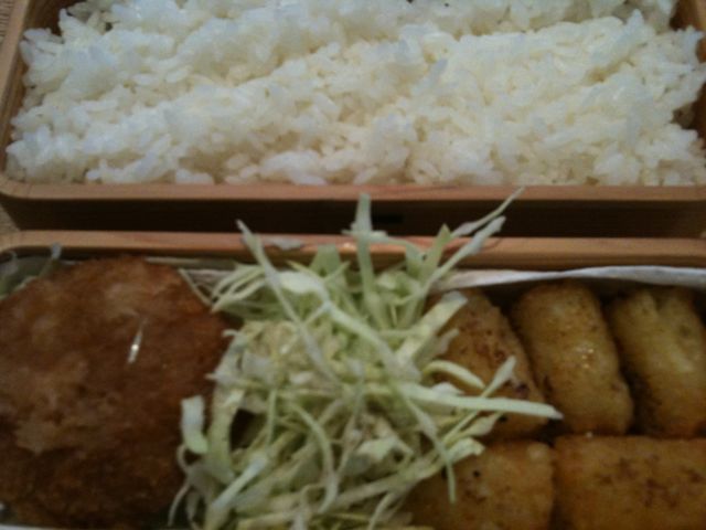 今日の弁当はポテト、キャベツ、ひれかつ。