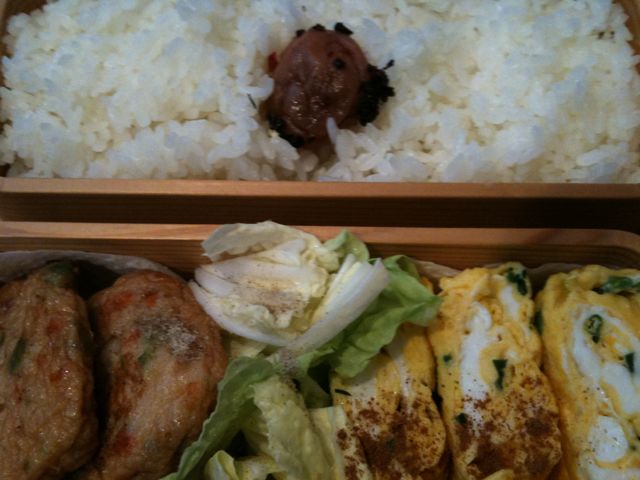 今日の弁当は、卵焼き、ねりもの、白菜。