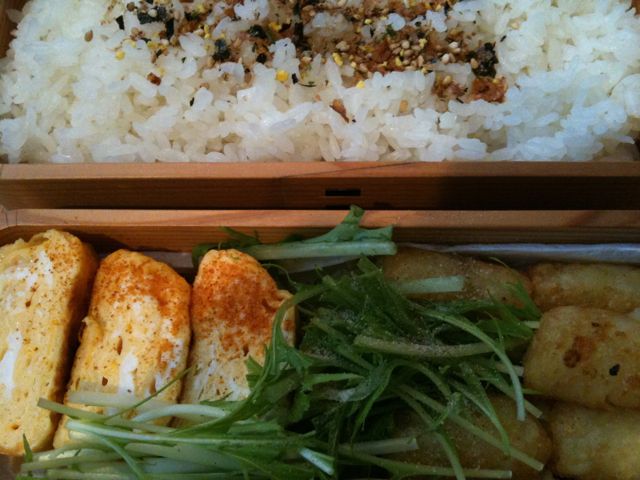 今日の弁当は卵焼き、水菜、ハッシュドポテト。最近弁当向けのおかずネタが繰り返しばかりになっている、という気がしますが。ま、それもよし。