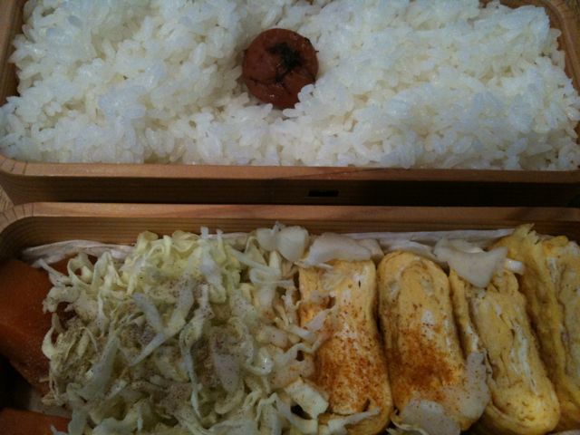 今日の弁当は、卵焼き、キャベツ、にんじん。