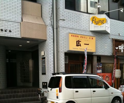 広島市、八丁堀交差点近くの「Flying Kids」を初訪問。僕は普段「なじみの店」を作ったり「常連客としてふるまう」事が無いのに、この店では予想に反して、店長さんと食事客数名とまるで常連客のように話して盛り上がってしまいました。昼食はカレーセットで、スパイスがしっかり効いておいしいのですが、それはともかく、ここの音楽好きの店長(ママ?お姉さん?呼び方は不明)の話上手には感心します。どんどん話にひきこまれ、気がつくとカウンターで隣り合った他のお客さん(どうやら常連客も多い)たちと音楽談義、食べ物談義がどんどん続いてしまう。客同士の紹介も上手。30-40-50代の音楽好きが集まる店らしくて、話題としては、広島市公会堂での山下達郎(アルバムGO AHEAD発表直後)のライブ(今wikipediaで調べると1979年10月21日(日)広島市公会堂)、広島でのLed Zeppelinのライブ(今調べると、1971年広島県立市民体育館らしい)、デイビッドサンボーンの2009年12月のライブ、お好み焼きの店としては、はっしょう、じぞう通り「八誠」、ロペズ、そして、カレー作りの話、などなど。大変に中身の濃い話がきけて実りの多い時間でした。なお今日は昼食におとずれましたが店の中心は夜の営業とライブ演奏。「Flying Kids」公式サイトを参考に。年に数回の「おやじナイト」も面白いらしい。「Flying Kids カレー」だけで検索してもネットで少々の情報が出てきますが、僕が苦労したのは店の入り口探し。広島市中区鉄砲町8-24、 八丁堀交差点を北(白島寄り)に2ブロック進んで東に入り、そこで二階を見上げて黄色い看板をみて、さらに「焼き肉屋」よりも左にある目立たない階段を探してそこから入ります(エレベータも可)。こういう時にgoogle ストリートビューで見ると一階は赤い看板のラーメン屋。今日とった写真では一階は黄色の看板の焼き肉屋です。