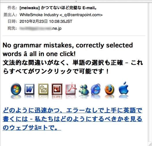 今日は自作弁当は無いので、かわりに最近きた、妙なスパム。