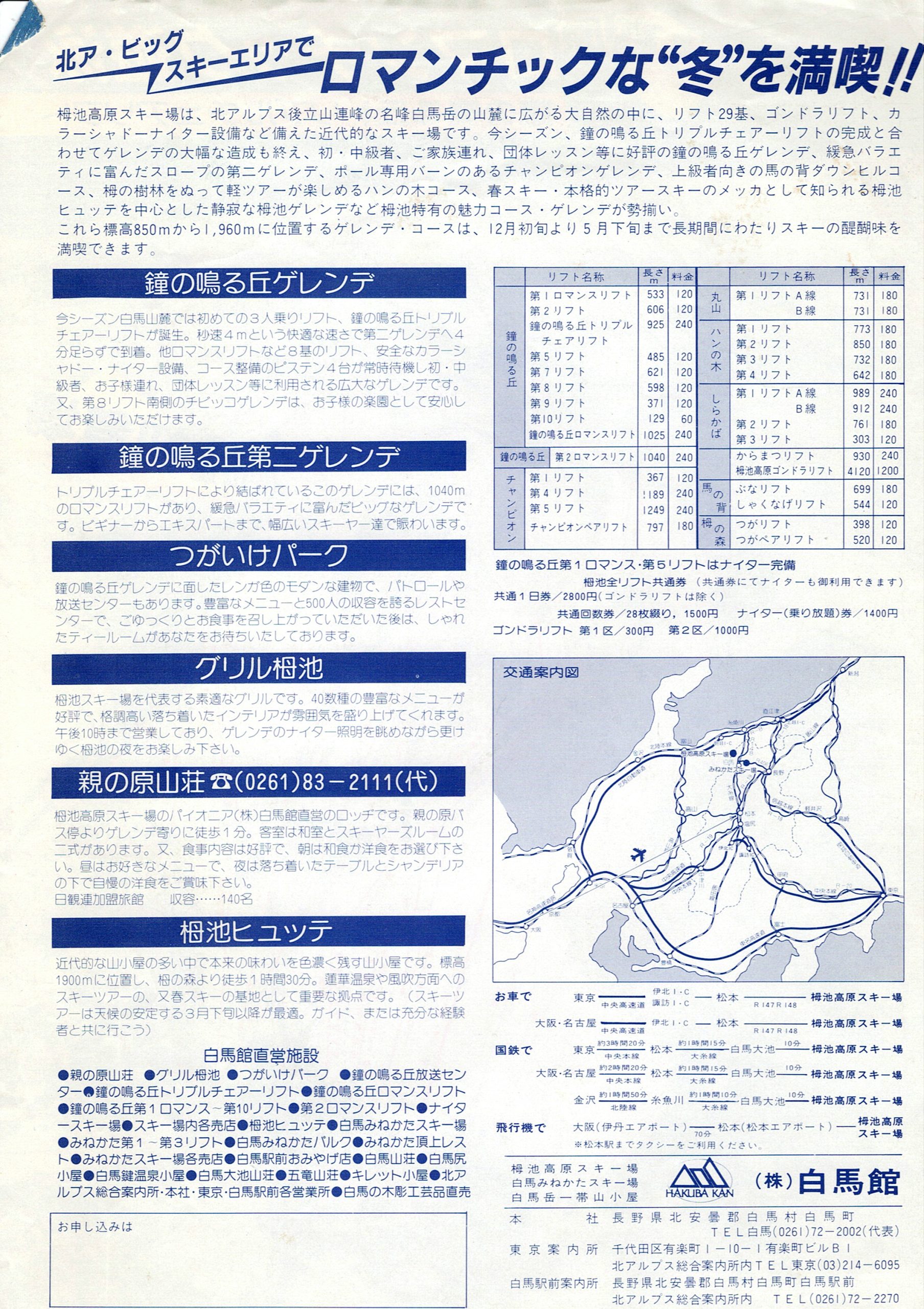 1985年3月と、1986年12月には長野県の栂池(つがいけ)には行ったような資料が手元で見つかりました。(日程表は残ってないので日付は怪しいですが)