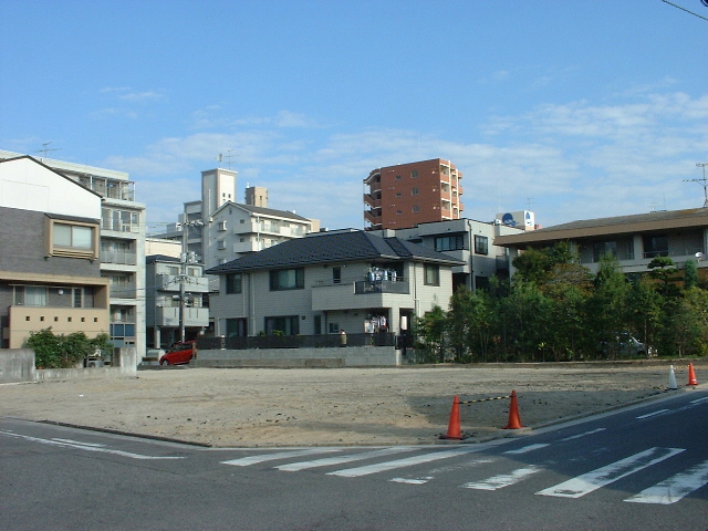 己斐本町ツタヤ近く(吉野家近く)、広島市西区己斐本町2丁目17-9のあたりに気になる更地ができていて、見に行くと建築計画の札が立っていました。22戸の12階建て、仮称フローレンス己斐本町、平成20(2008)年3月完成予定、と書いてあります。写真はその土地を南の方向から(右は太田川、背中に2号線、左に宮島街道)見た風景です。写真の中にちょっぴり見えている茶色のビルは最近完成したワンルーム賃貸マンションです。(2006.10.07「己斐本町賃貸マンションその2」で書いた建物です)